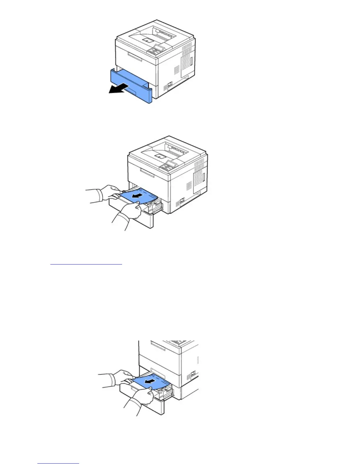 If you cannot see the paper or the paper does not move when pulled, check the fuser area. For more information,