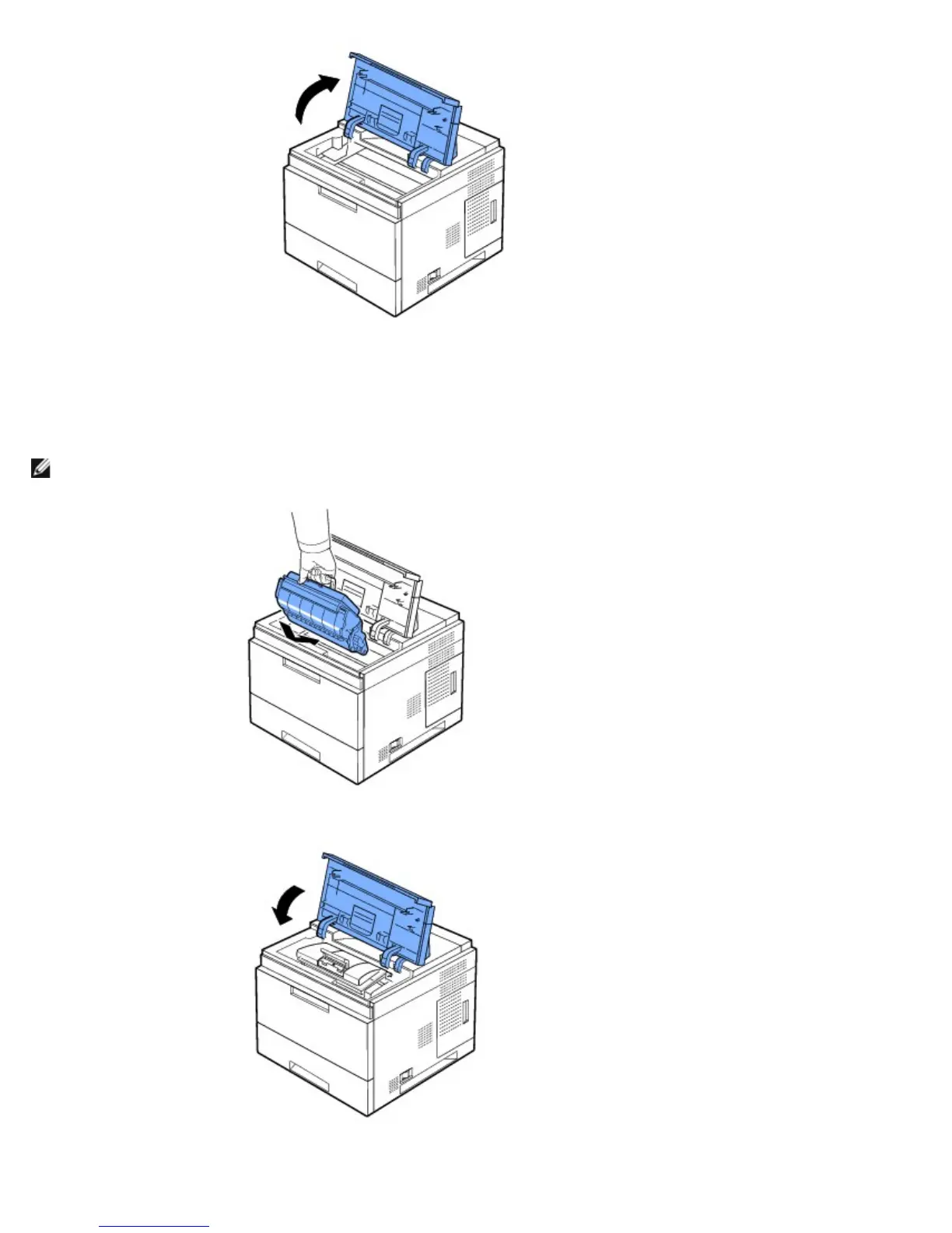 6. Hold the toner cartridge by the handle and slowly insert the cartridge into the printer opening.