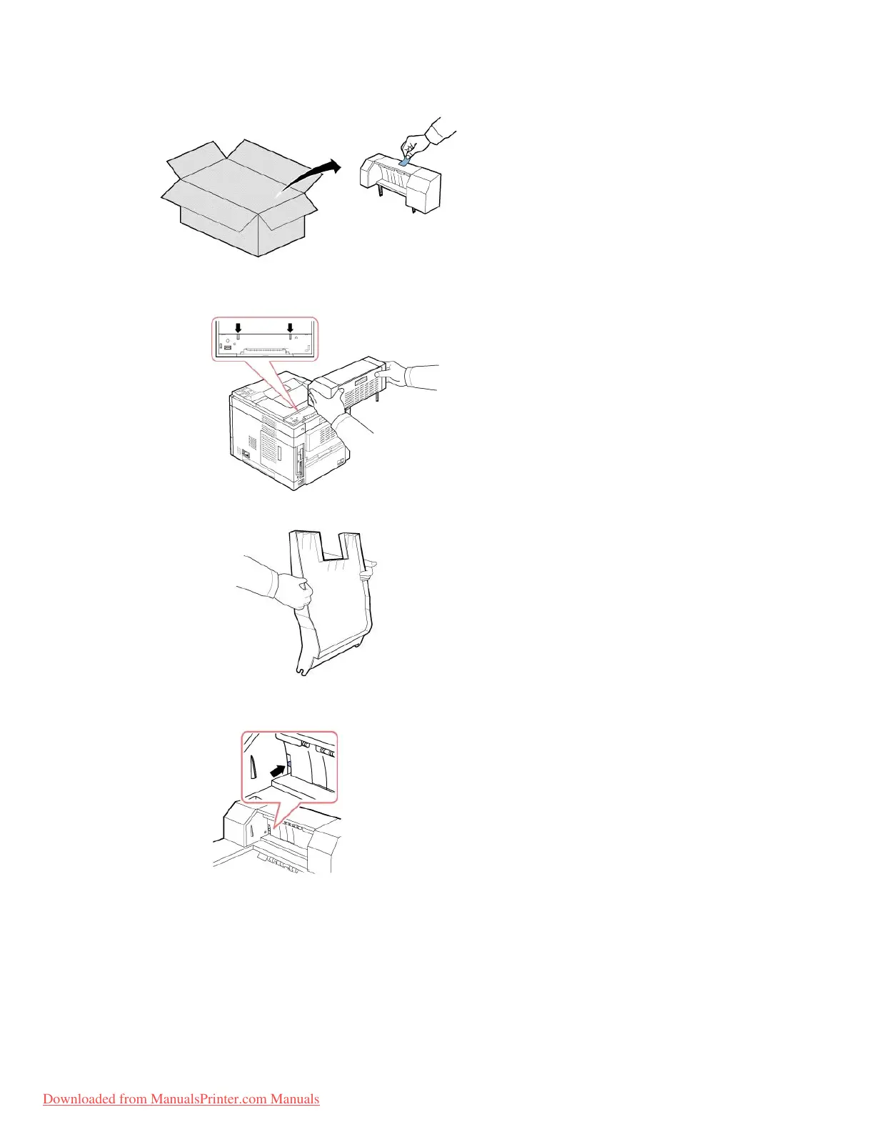 4. Locate the Output Expander alignment pins and insertion slots on the printer. Align the pins on the output expander with the slots on the printer and