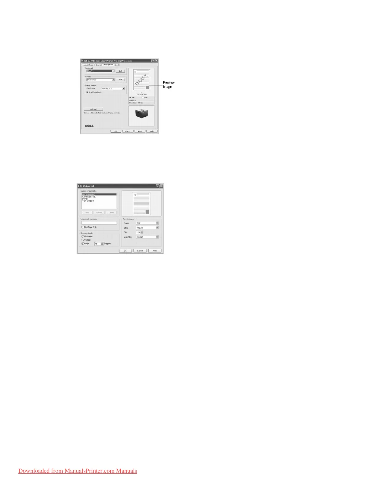 The message displays in the preview image window. The preview image is provided so that you can see how the watermark will appear on the printed