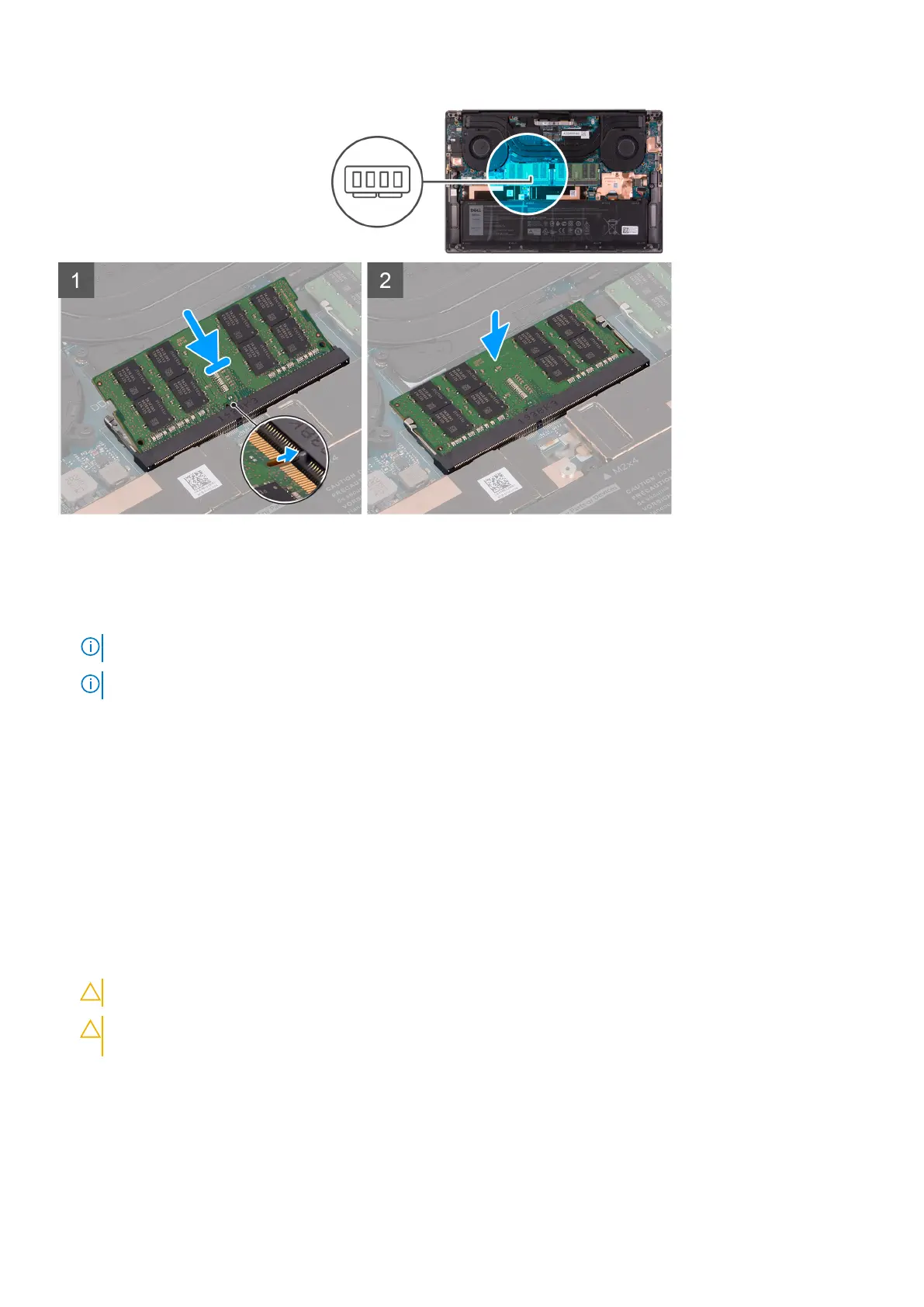 NOTE: Repeat step 1 to step 3 to install the other memory module if available on your computer.