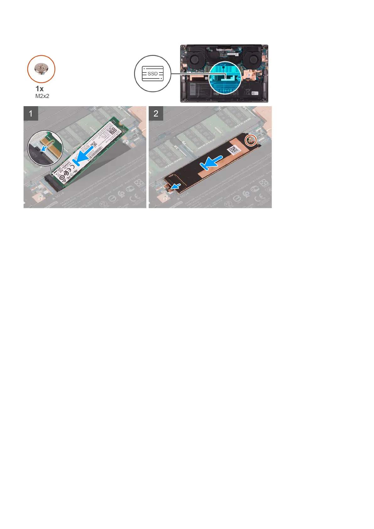 4. Replace the screw (M2x2) that secures the solid-state drive thermal bracket and the solid-state drive2 to the system board.