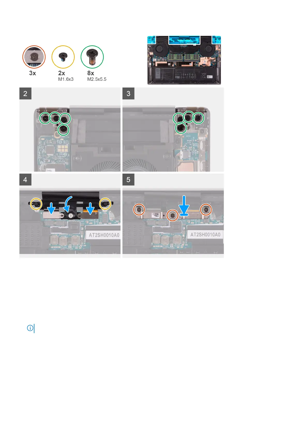 NOTE: Apply gentle torque when tightening the two screws (M1.6x3) to avoid damaging the screw threads.