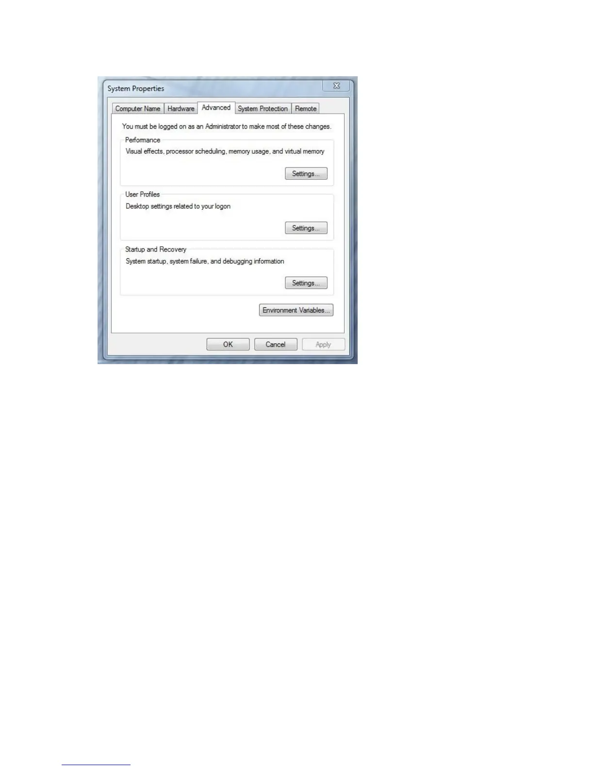 6. Under the Advanced tab depress the Settings...” button for performance.