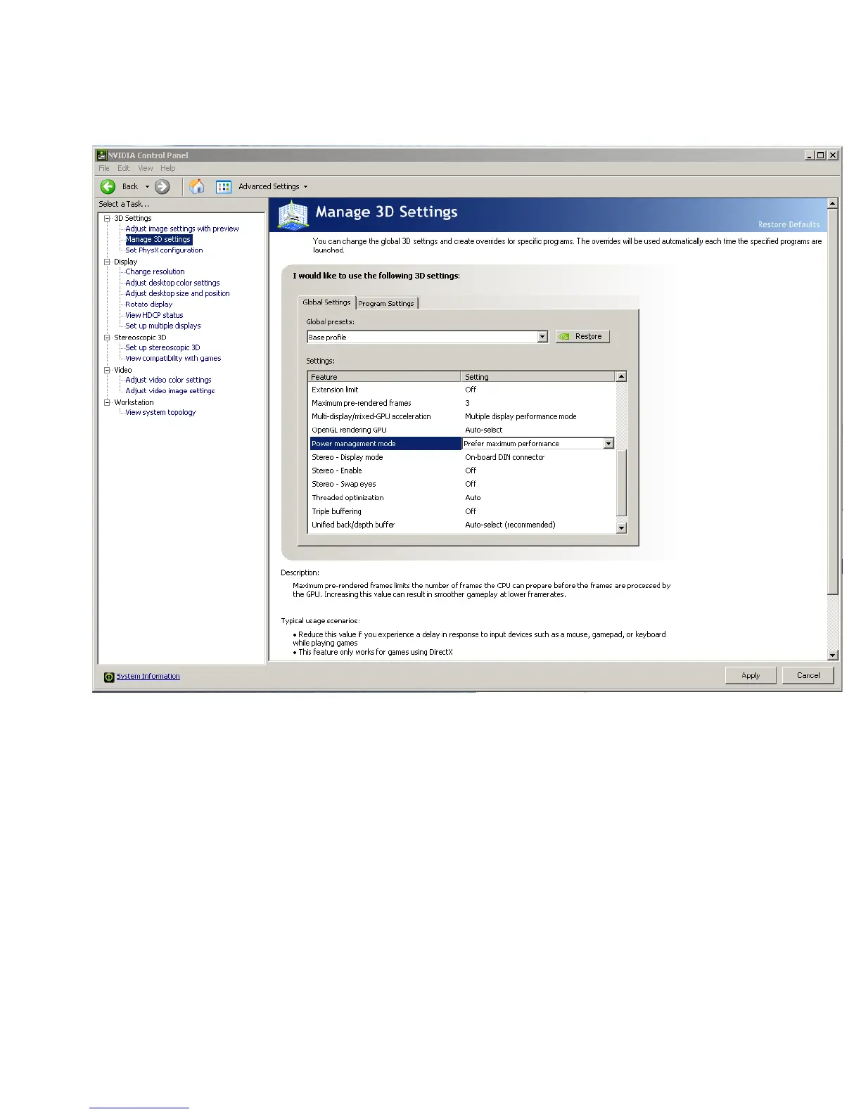 9. For the Power management mode feature, select Prefer maximum performance as shown in