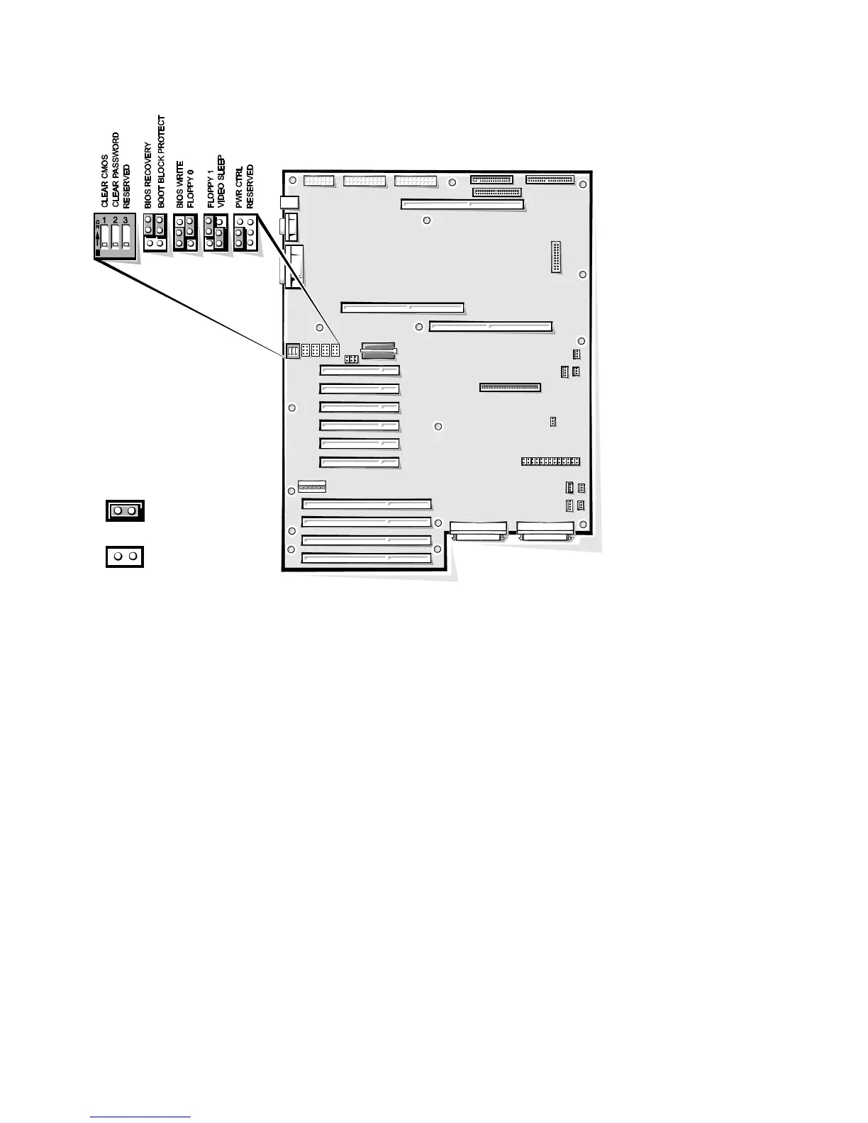 Dell 6100 - Figure 1-15. System Board Jumpers and Switches; System Board Jumpers and Switches