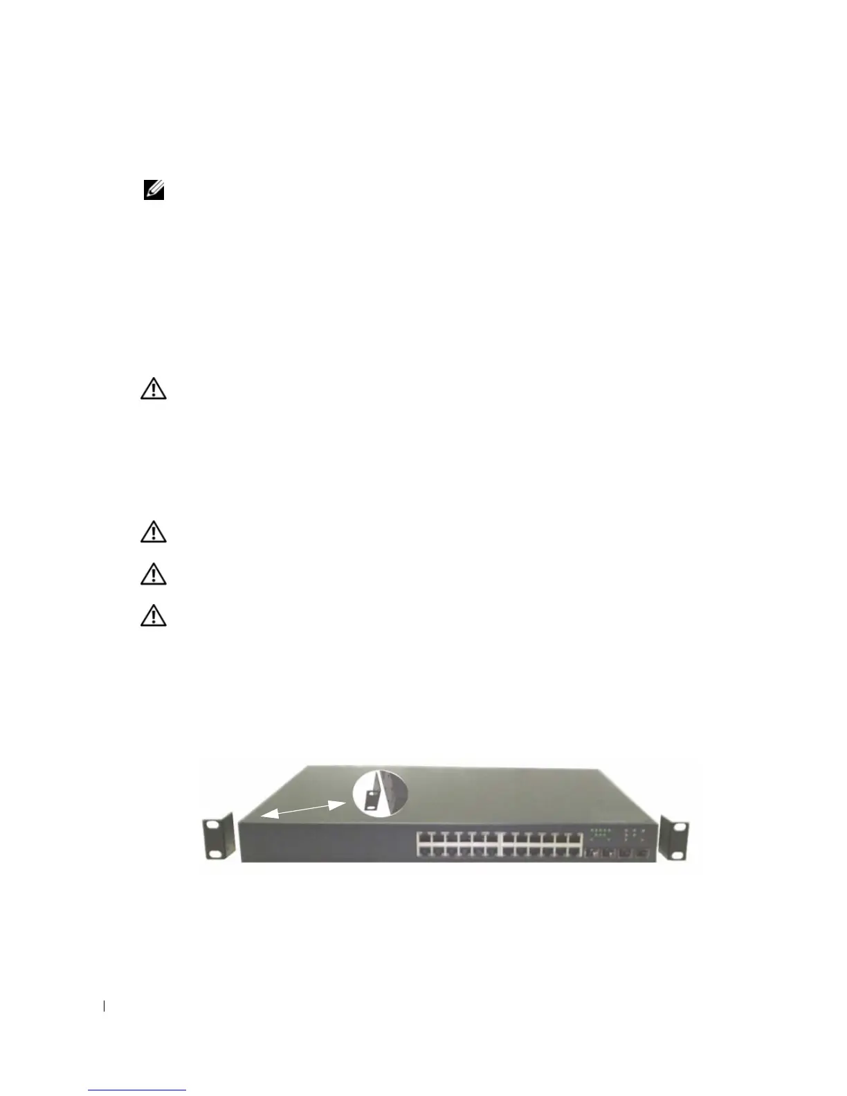 警告: ラックに複数のスイッチを設置する場合は、下から上の順に取り付けます。