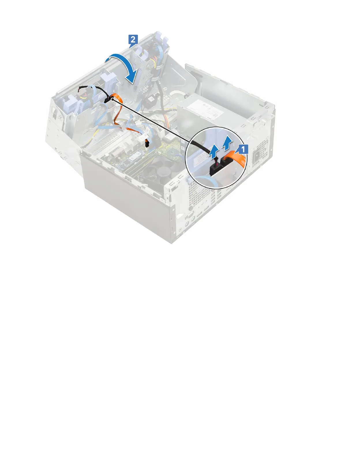 c Press the blue release tab [1] and slide the optical drive out of the system [2].
