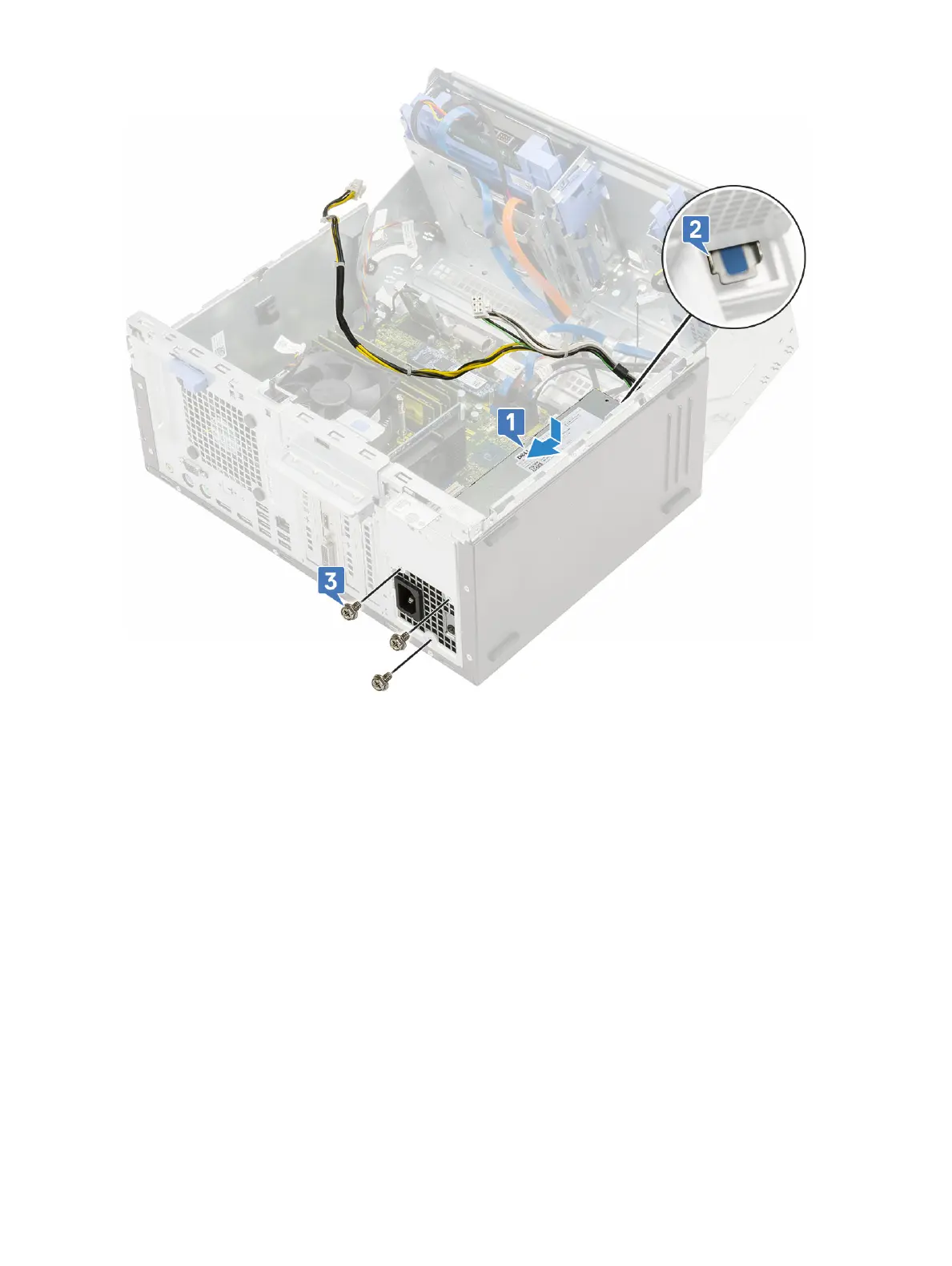 d Route the PSU cables through the retention clips [2, 3, 4, 5].