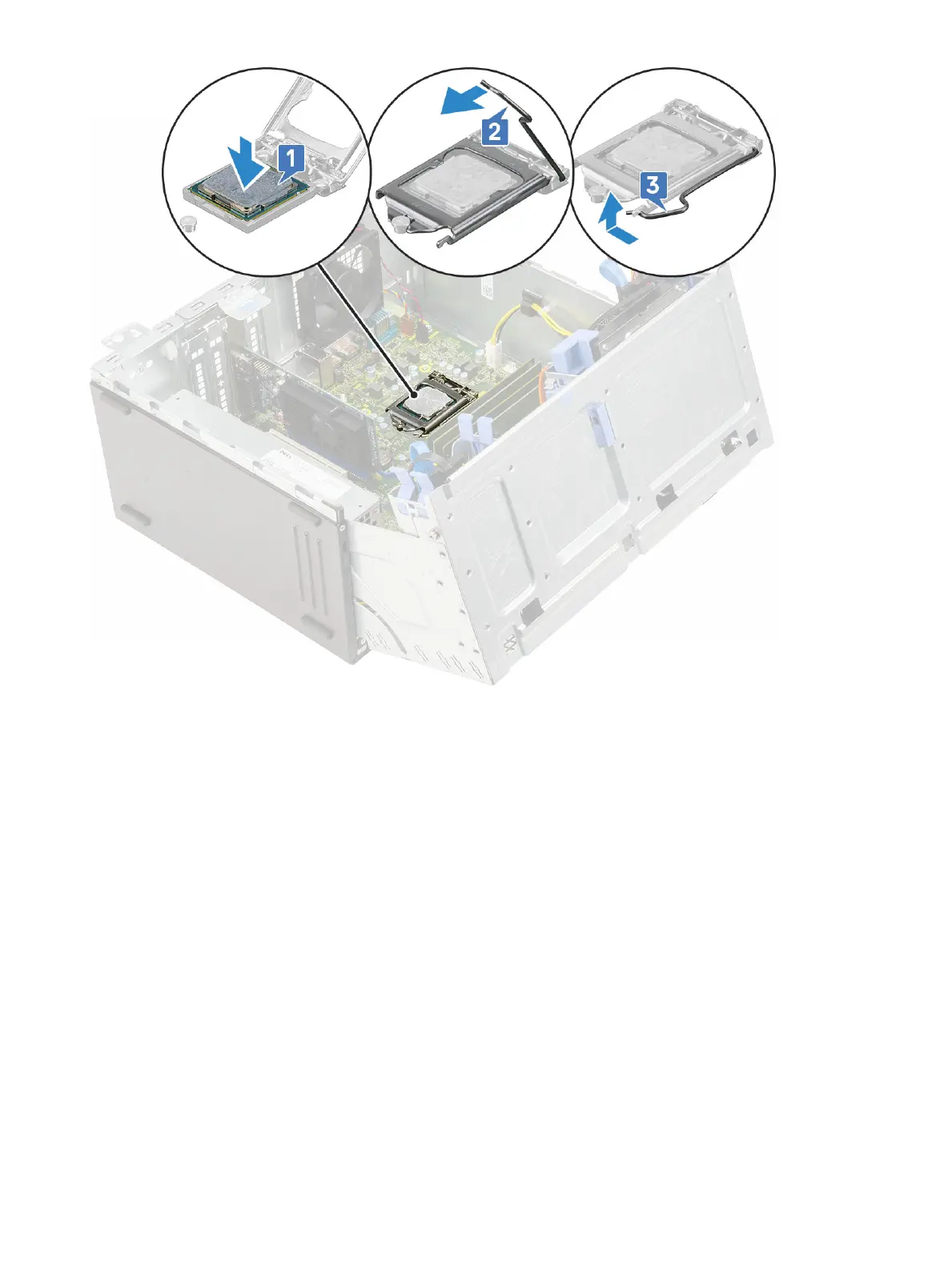 b Stretch the grommets to remove the grommets securing the fan to the computer[2].