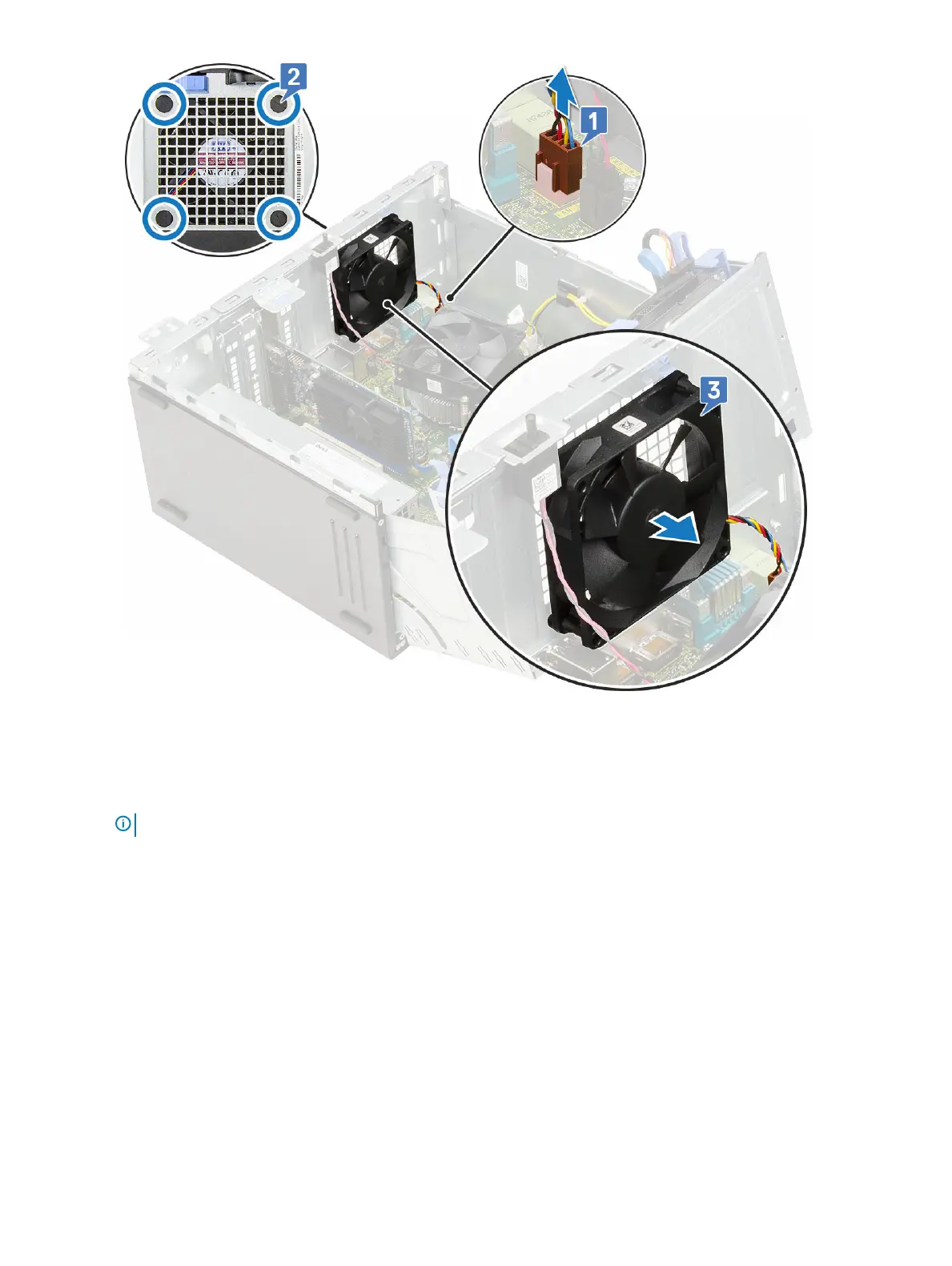 2 Hold the system fan with the cable facing the bottom of the computer.