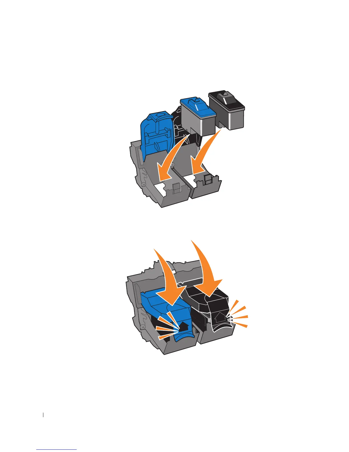 7 Insert the new ink cartridges. Make sure the color ink cartridge is secure in the left ink