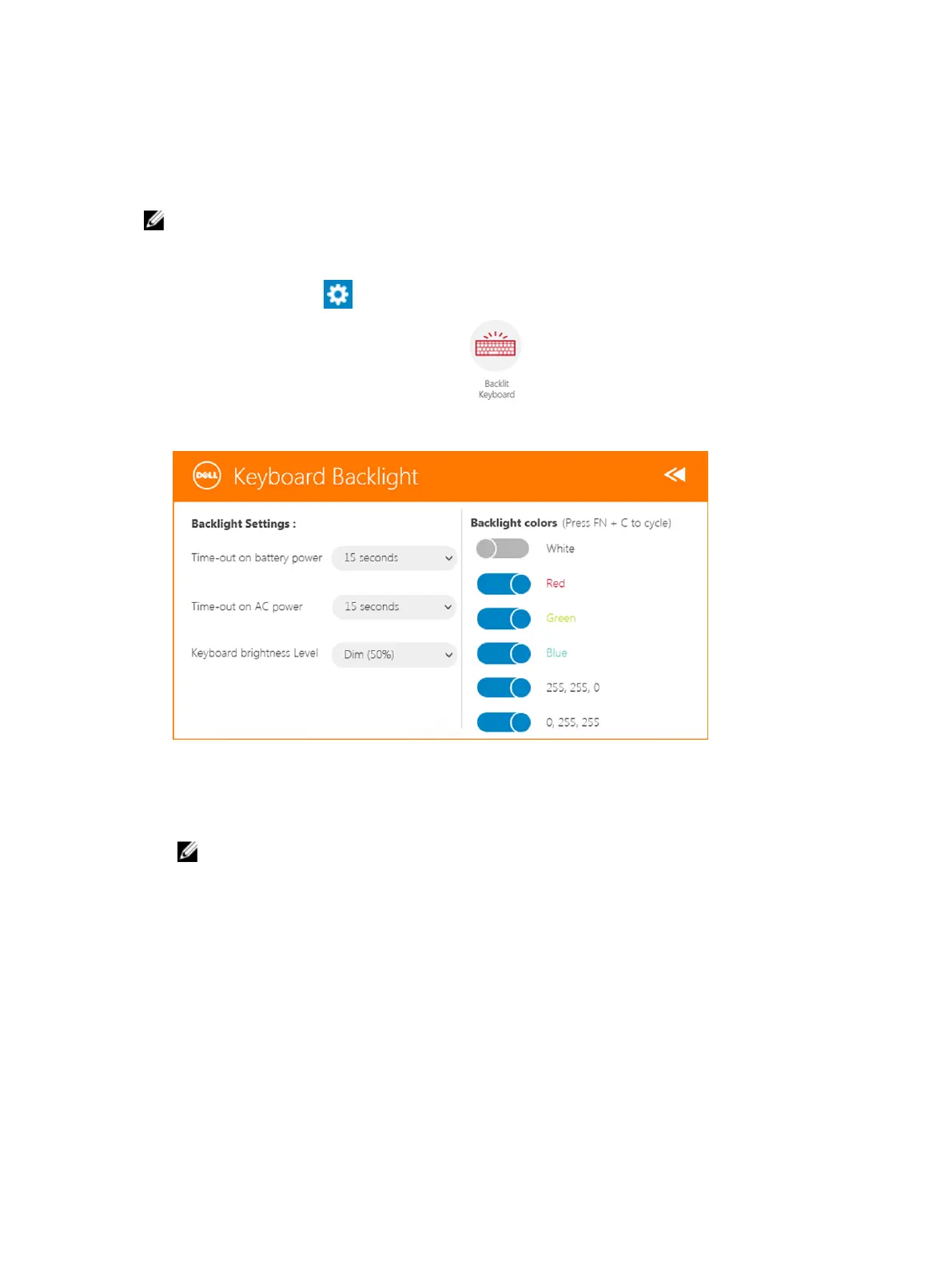 N.B.: Premere i tasti <Fn> + <C> per ripetere i colori di retroilluminazione della tastiera.