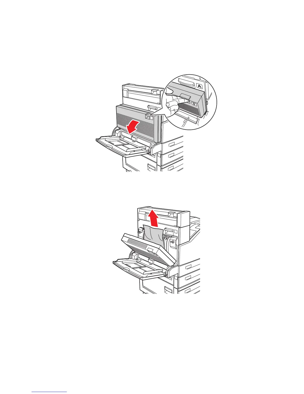 2. Pull the jammed paper out of the printer. Confirm that all paper fragments are removed.