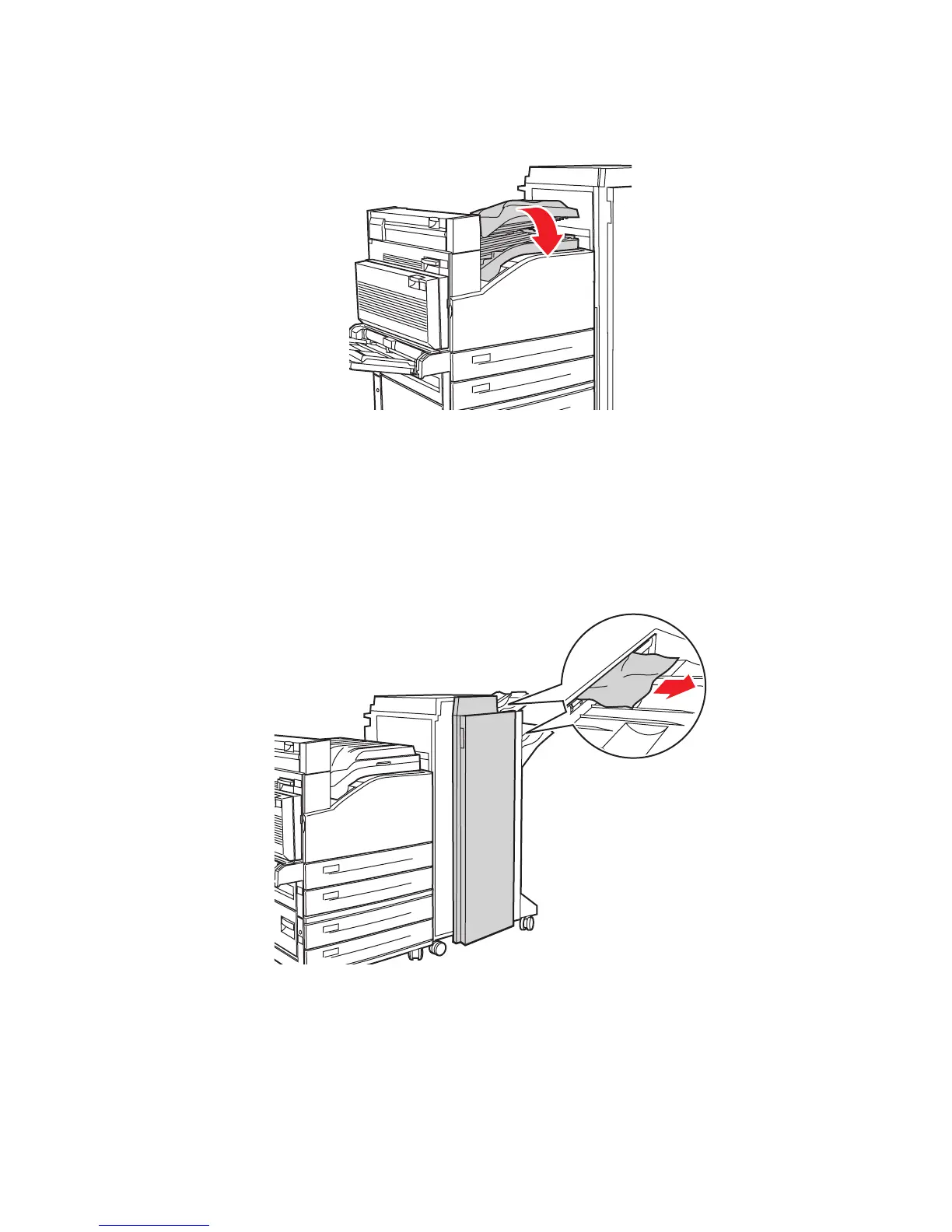 1. If visible, pull the jammed paper out of the stacker upper tray.