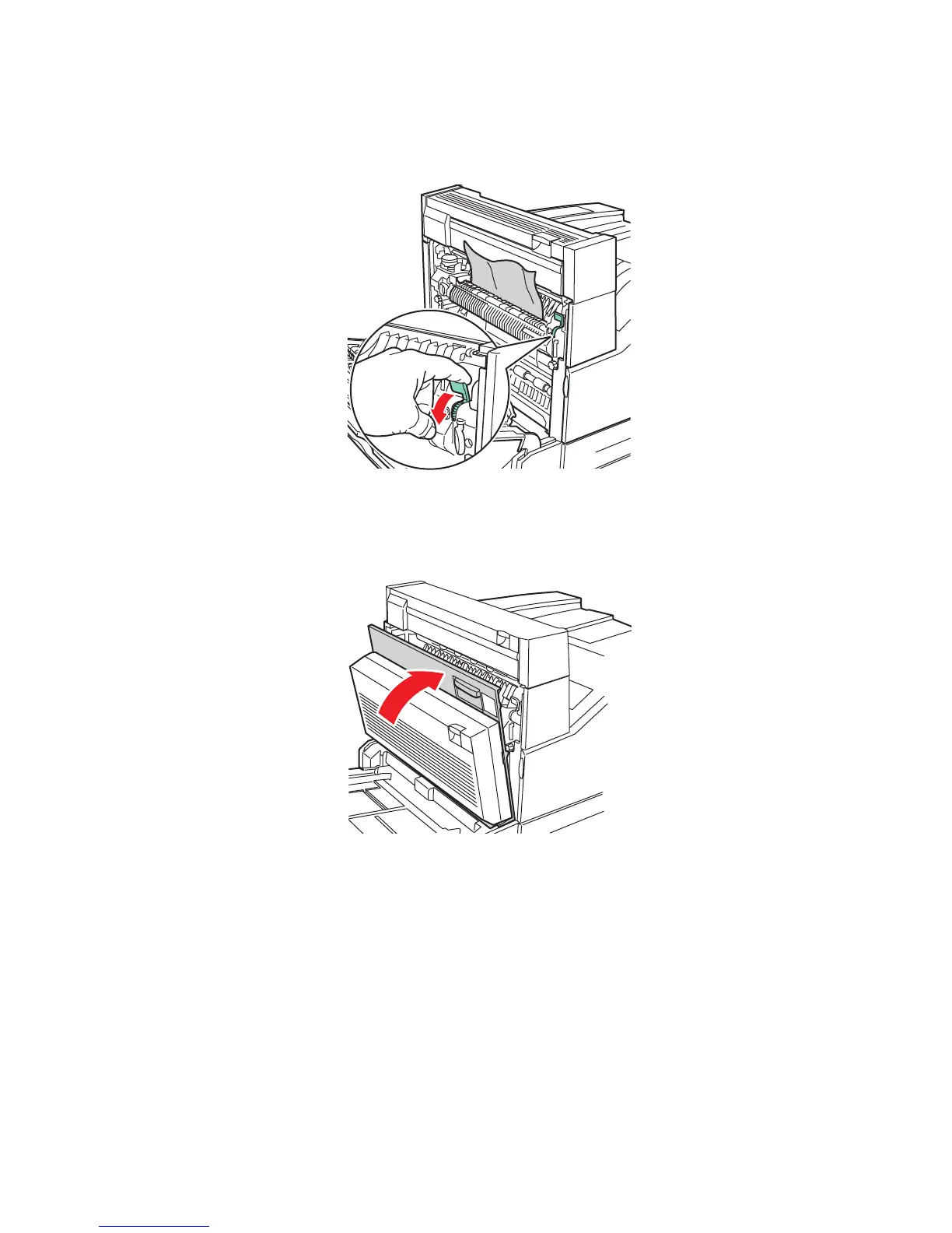 5. Pull the jammed paper out of the printer. If necessary, press the green handle to move the