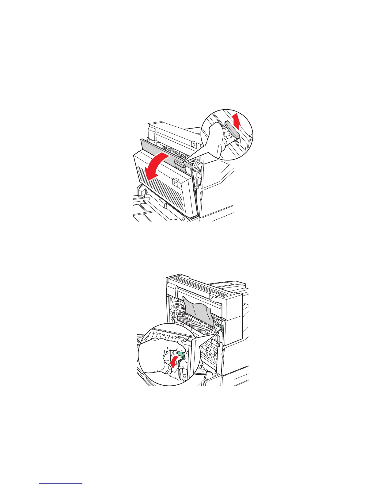 2. Pull the jammed paper out of the printer. If necessary, press the green handle to move the
