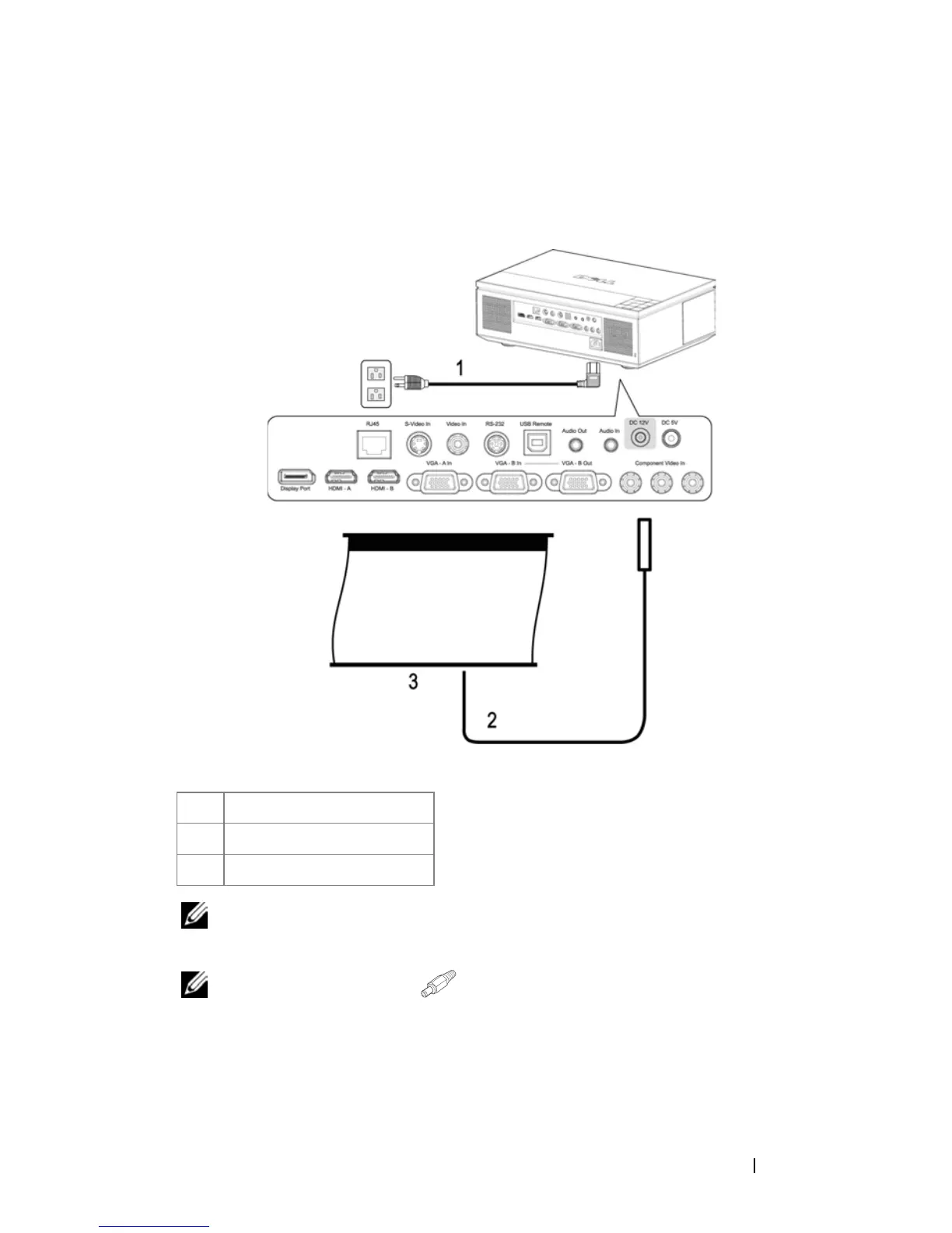 NOTE: The 12V DC power cable is not provided by Dell.