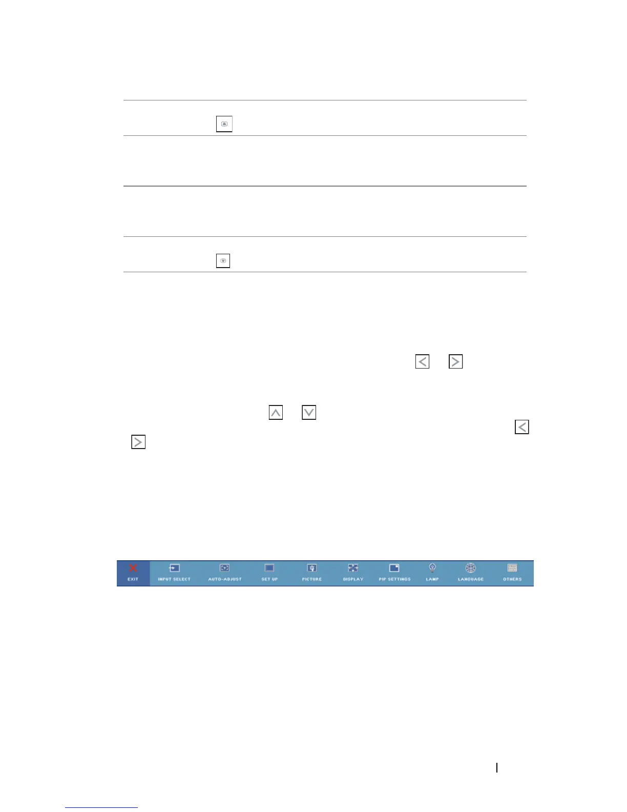 To select an option, press the or on your projector’s control panel or