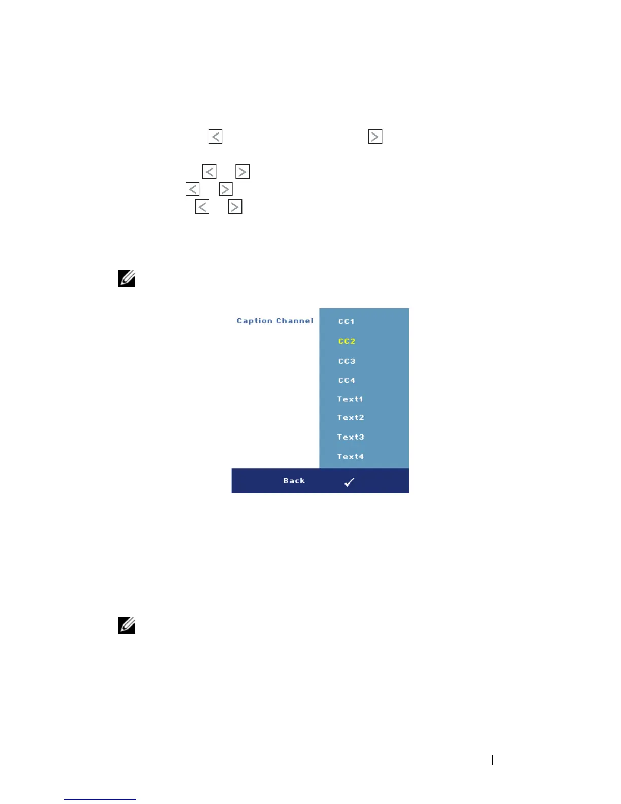 hearing-impaired. Select Off to disable closed caption.Select a suitable caption