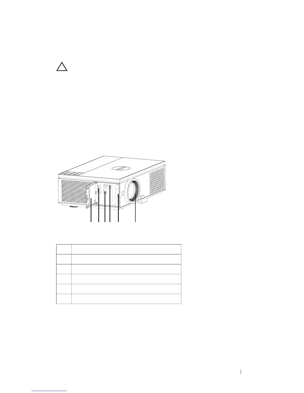 CAUTION: To avoid damaging the projector, ensure that the side door is fully