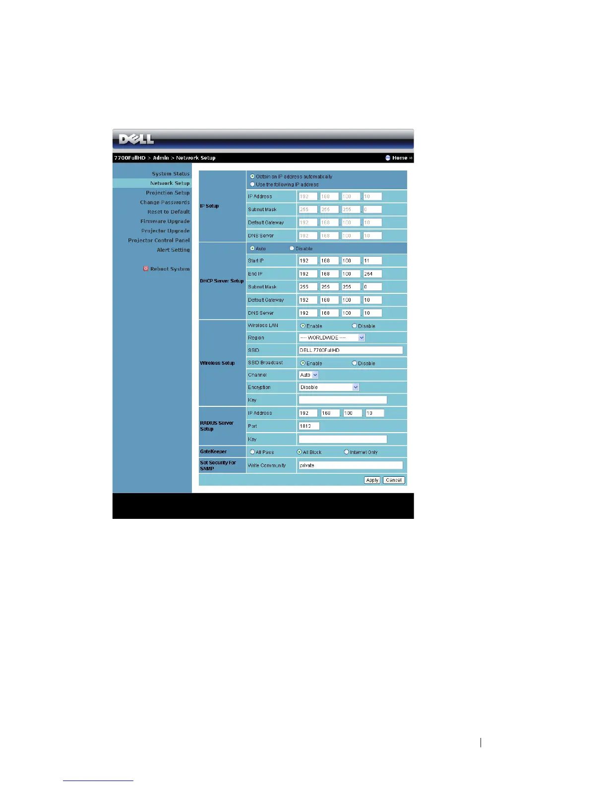 • Choose Auto to automatically set up the Start IP, End IP, Subnet Mask,