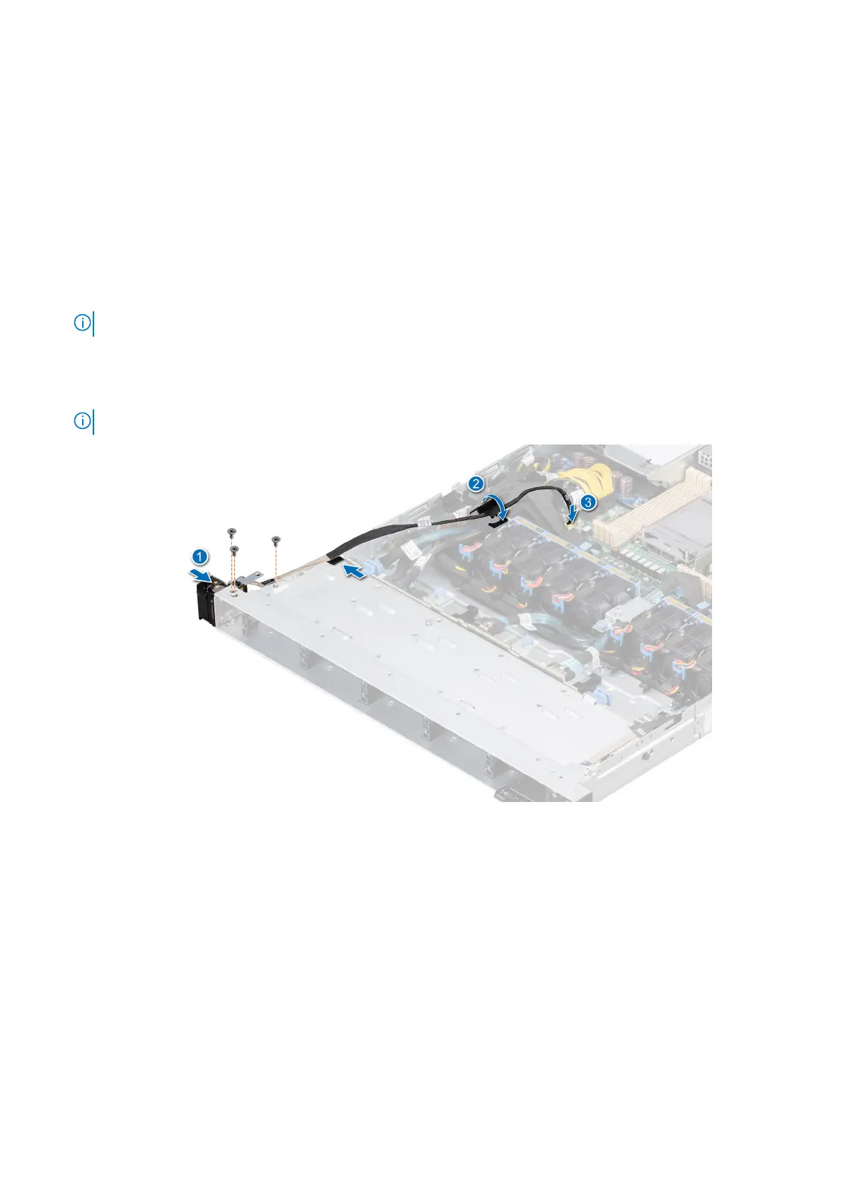 1. Route the control panel cable through the cable clip, the guide slots in the system and connector on system board.
