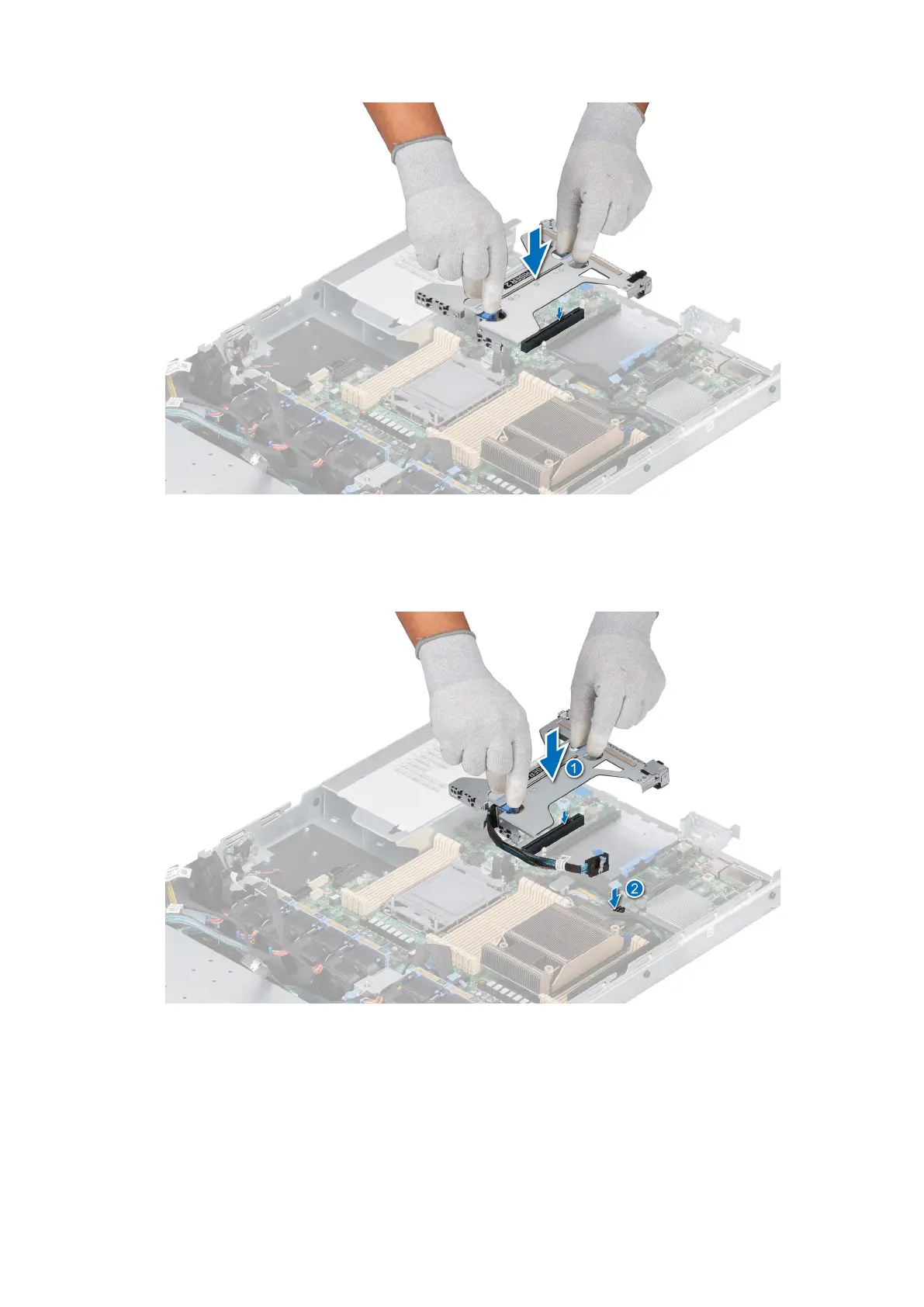 riser guide pin on the system board. Lower the expansion card riser into place until the expansion card riser connector is fully