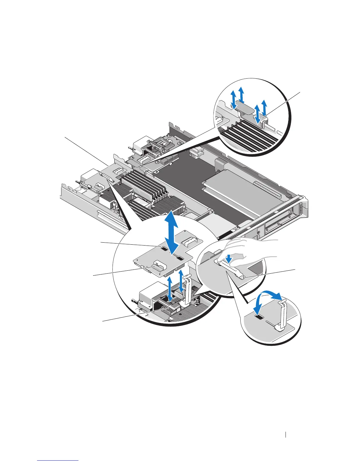 Figure 3-21. Removing and Installing the Mezzanine Interface Card (M610x Only)