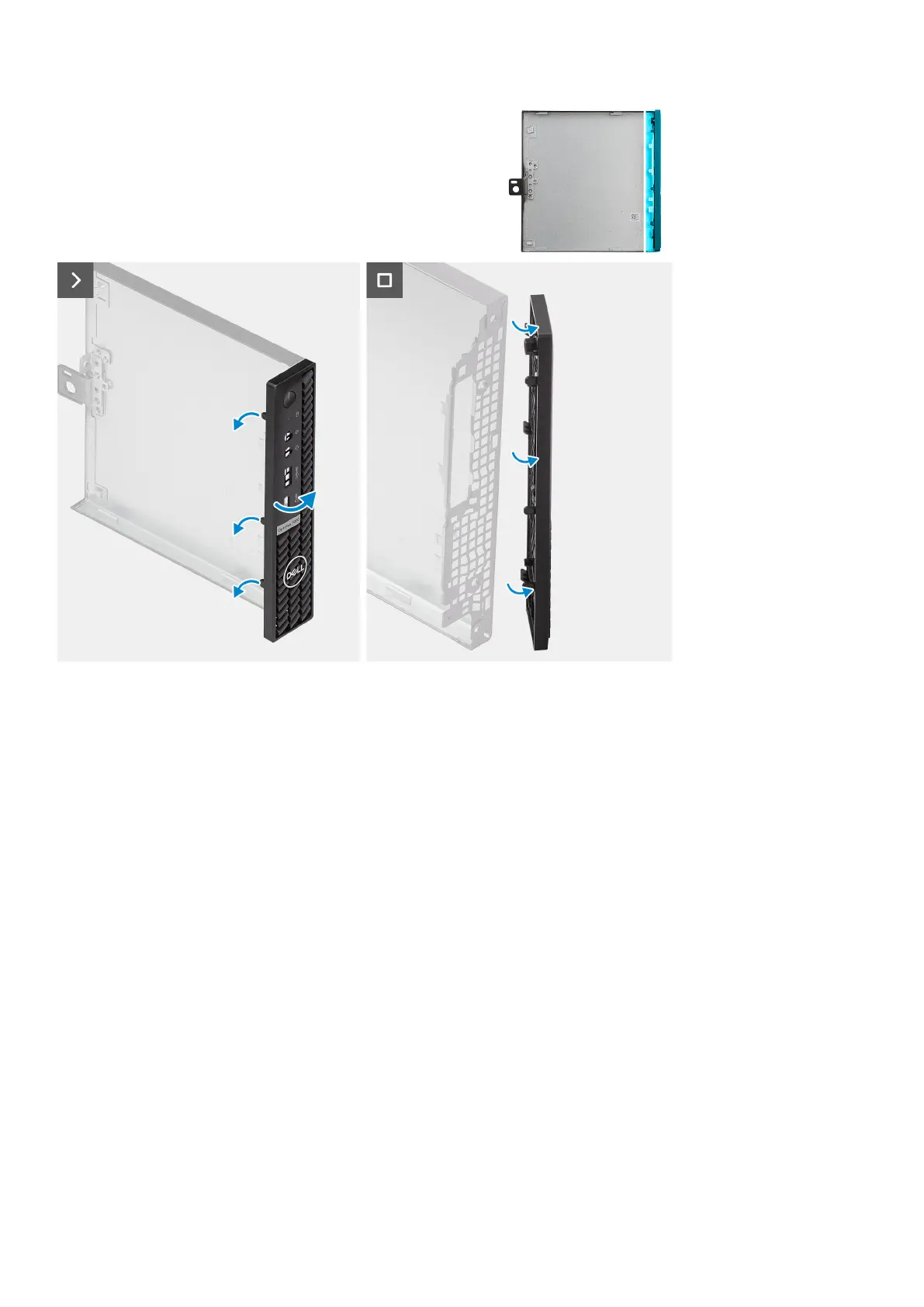 The following image(s) indicate the location of the front bezel and provides a visual representation of the installation procedure.