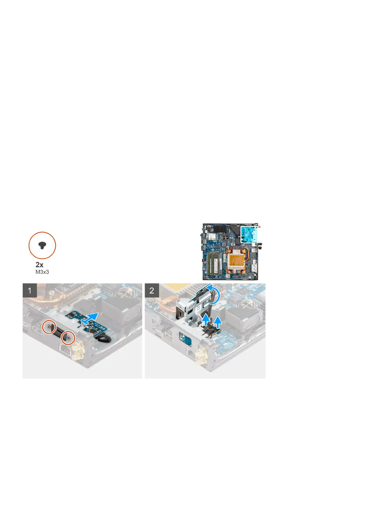 4. Replace the two (M3x3) screws that secure the optional I/O module (HDMI/DP/PS2) or two (M2x5) cross type screws