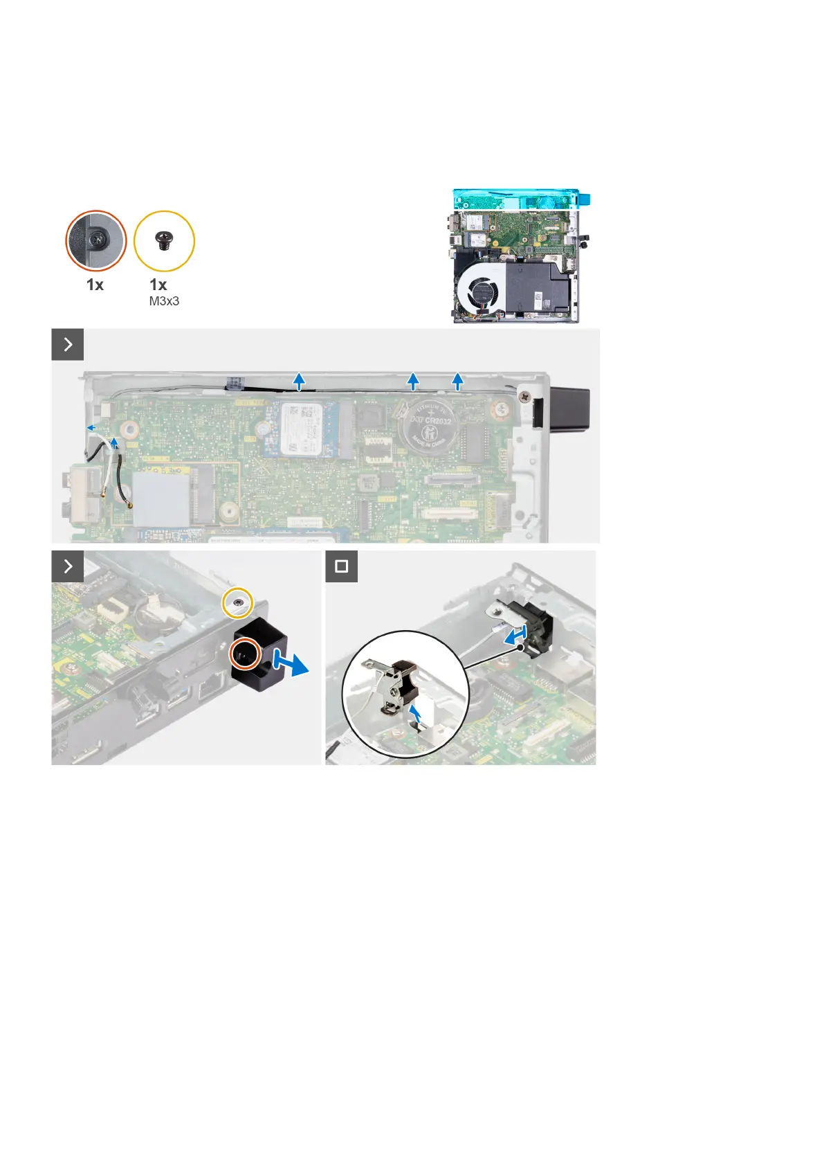 2. Remove the screw (M3x3) that secures the antenna module (white cable) to the chassis.
