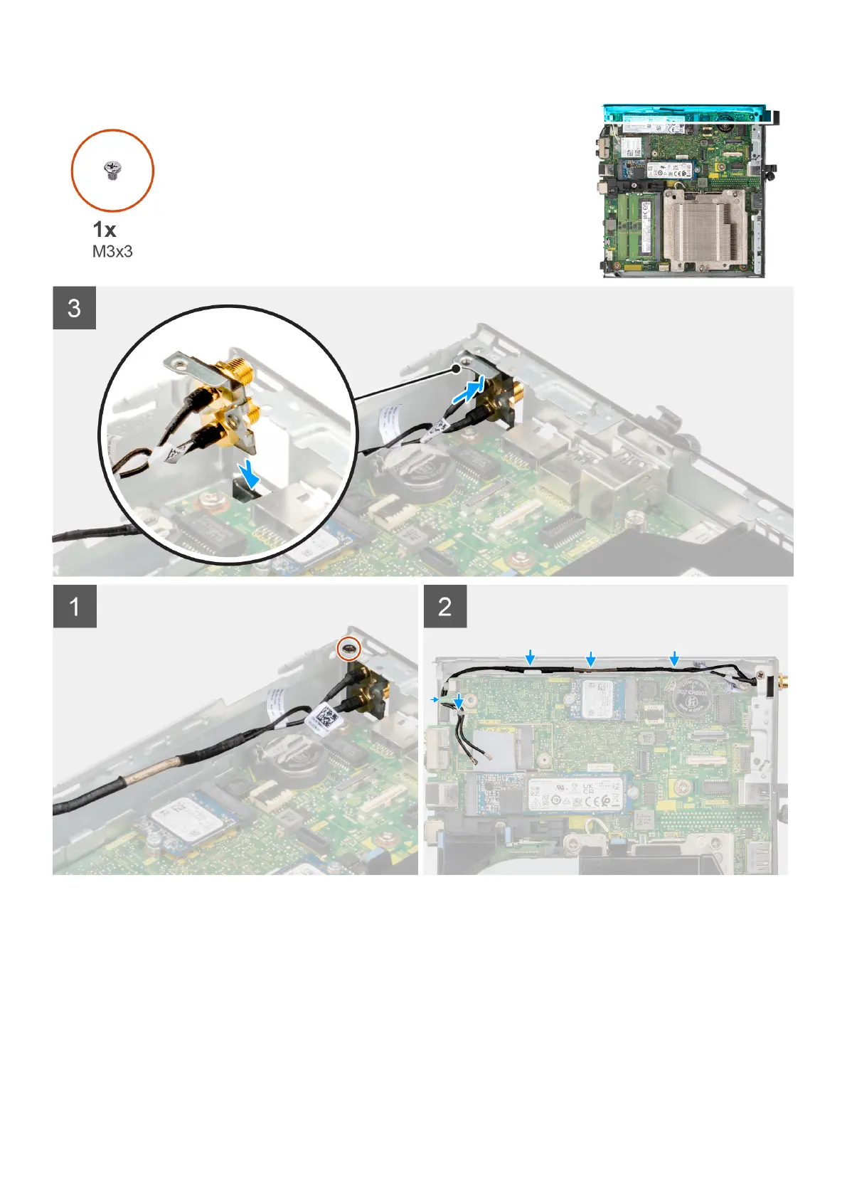7. Route the SMA antenna assembly cables through the routing guides on the chassis.