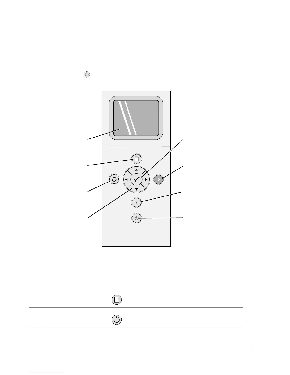 The operator panel buttons allow you to scan, copy, and customize documents. The printer is on
