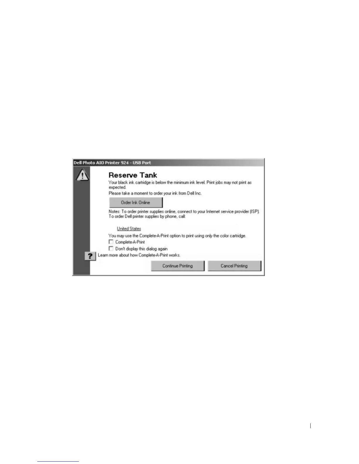 again until after the low ink cartridge has been replaced. The Complete-A-Print check box is