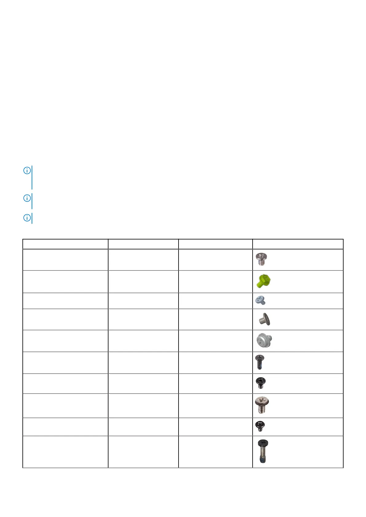 N.B.: When removing screws from a component, it is recommended to note the screw type, the quantity of screws, and