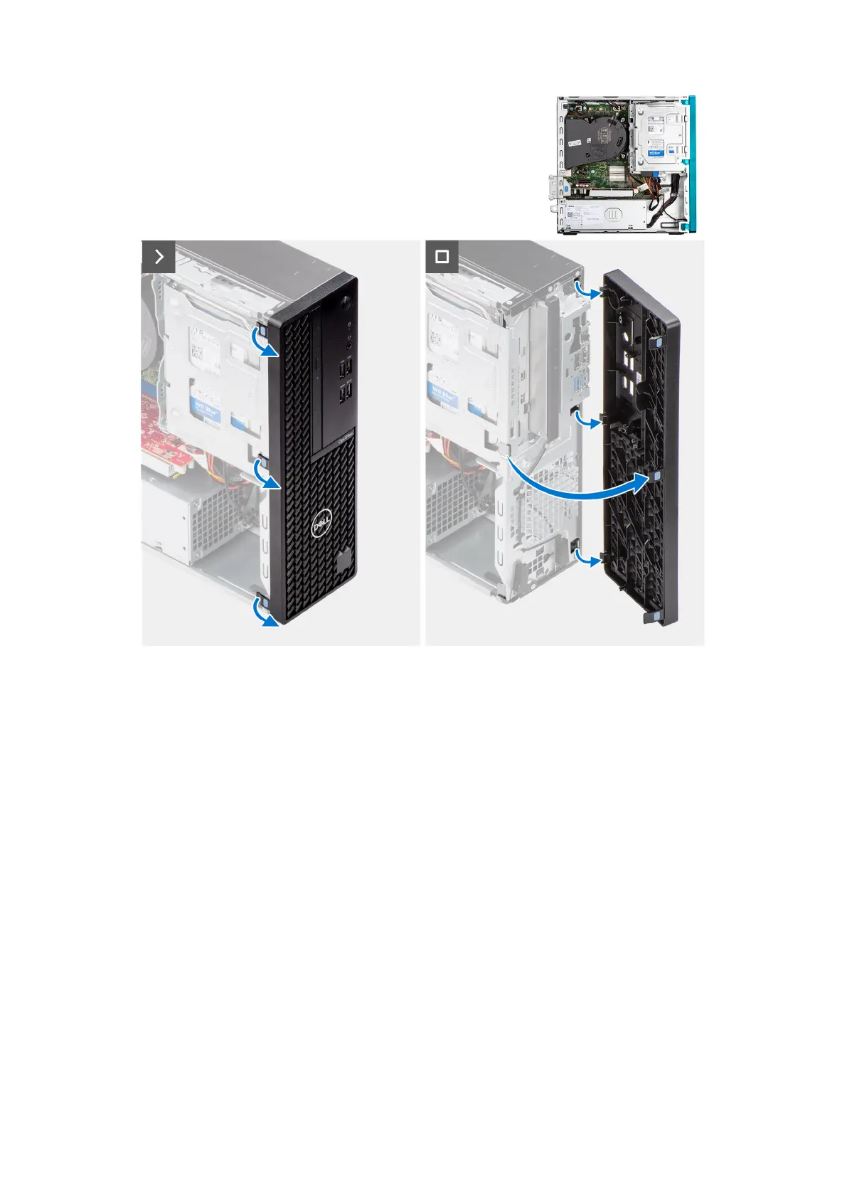 2. Ruotare in fuori il pannello anteriore, lontano dallo chassis, e rimuovere il pannello.