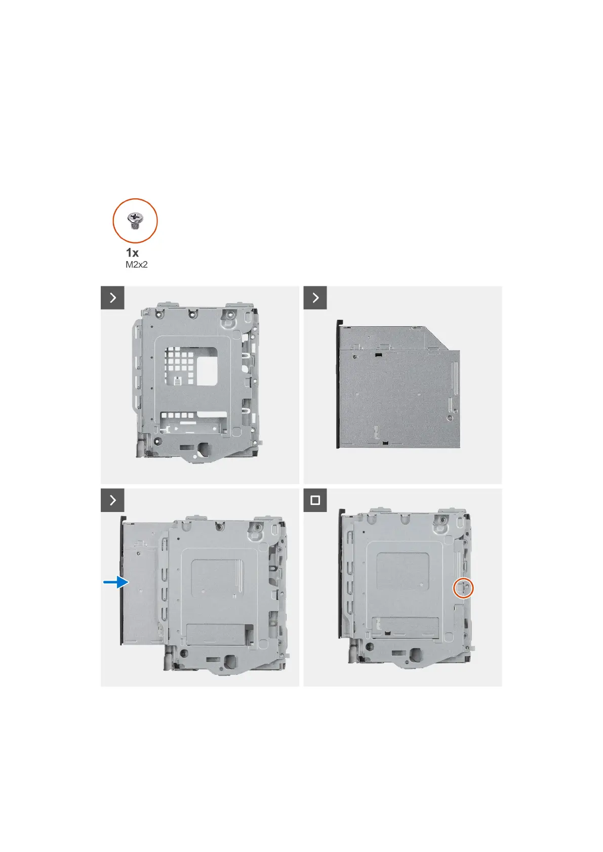 2. Install the single (M2x2) screw to secure the optical drive from the disk-drive cage.