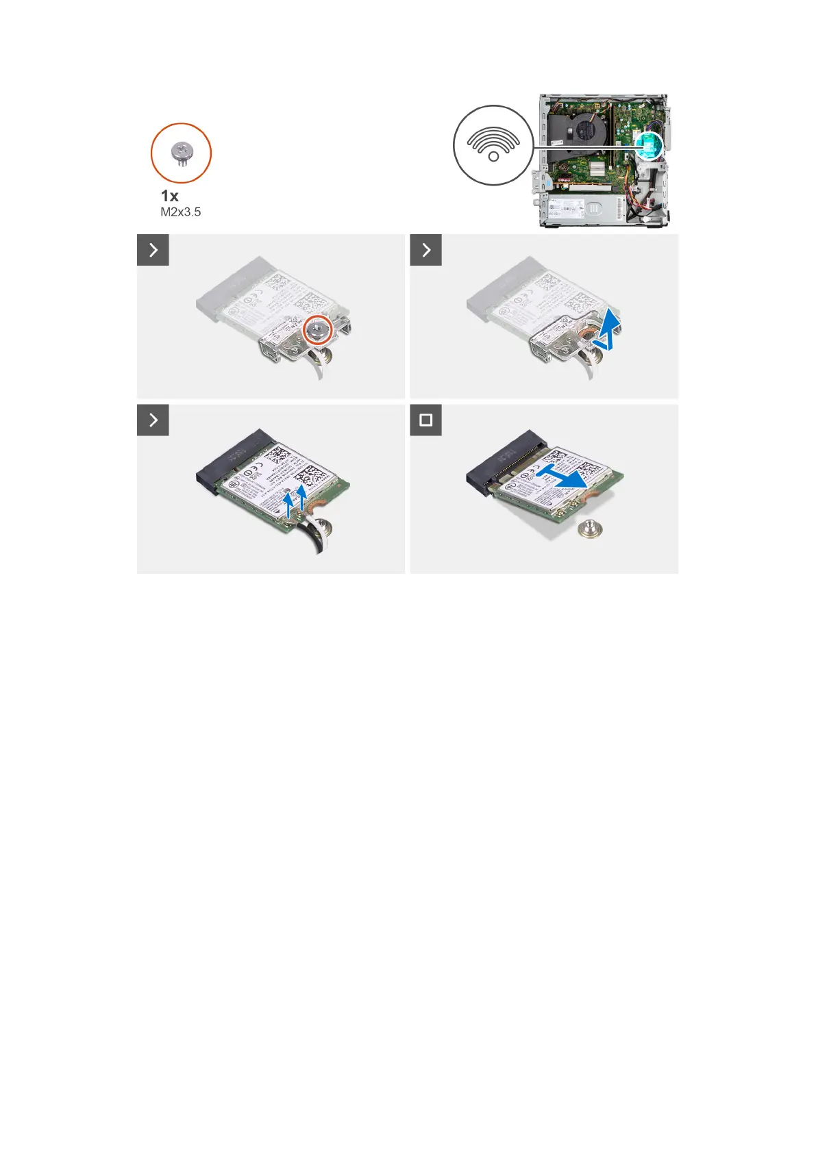 1. Rimuovere la vite (M2x3.5) che fissa la staffa della scheda wireless alla scheda di sistema.