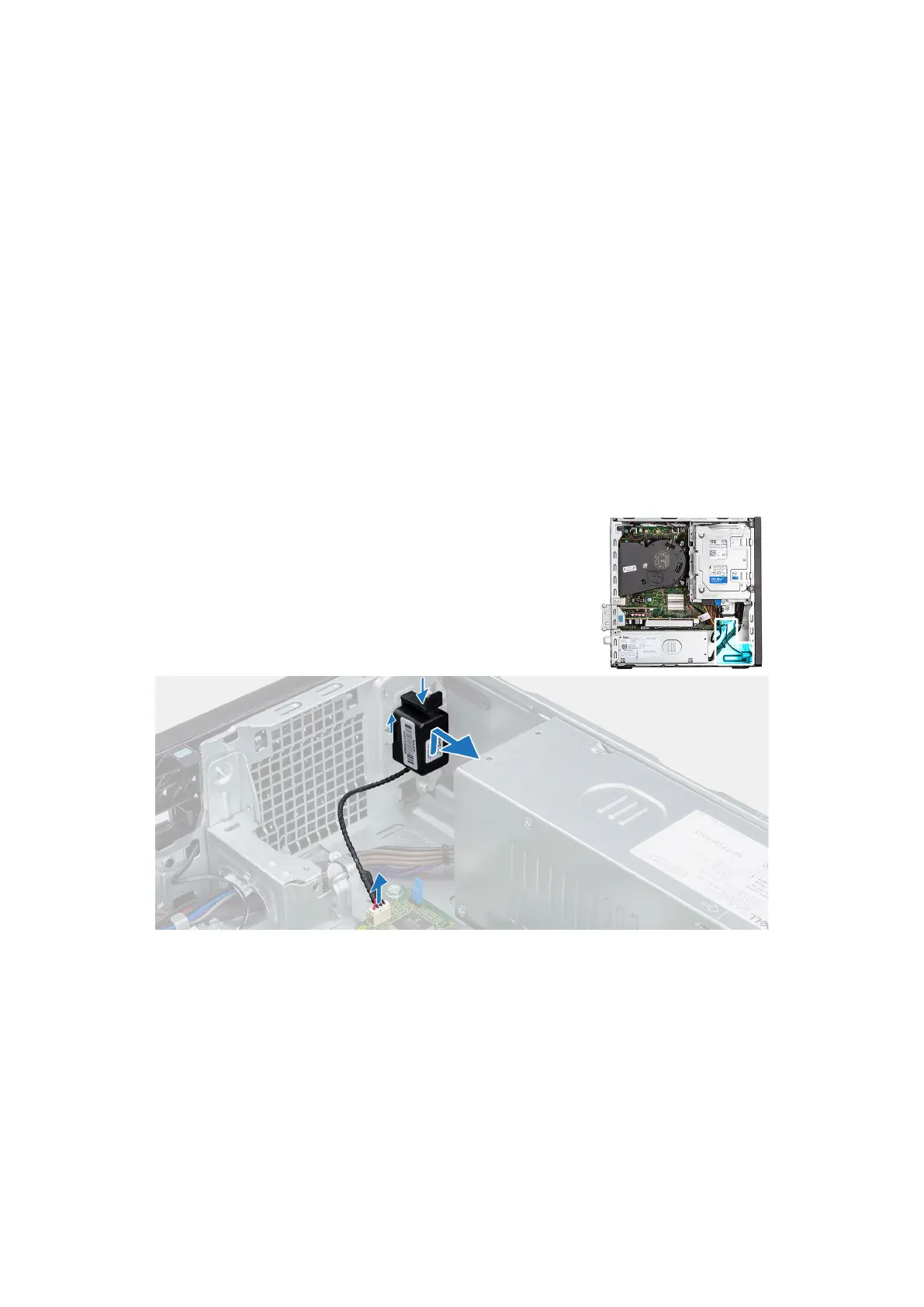 2. Premere la linguetta, sollevare e far scorrere l'altoparlante per rimuoverlo insieme al cavo dallo slot sullo chassis.