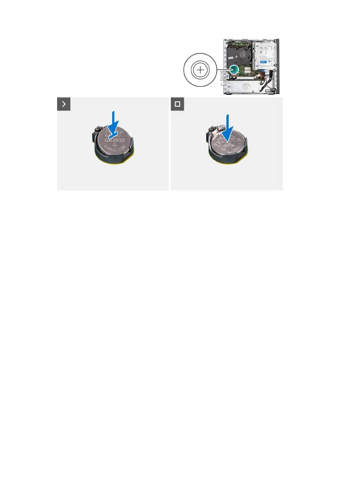 Inserire la batteria a bottone nel socket con il lato positivo (+) rivolto verso l'alto e far scattare la batteria in posizione.