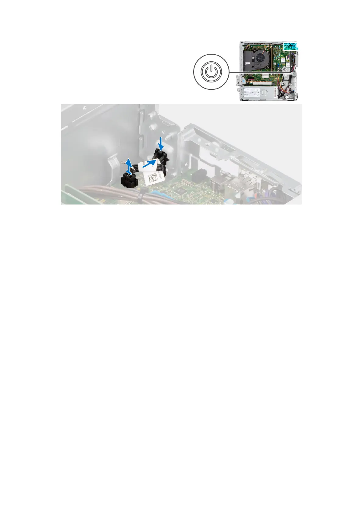 1. Scollegare il cavo del pulsante dell'adattatore per l’alimentazione dal connettore sulla scheda di sistema.