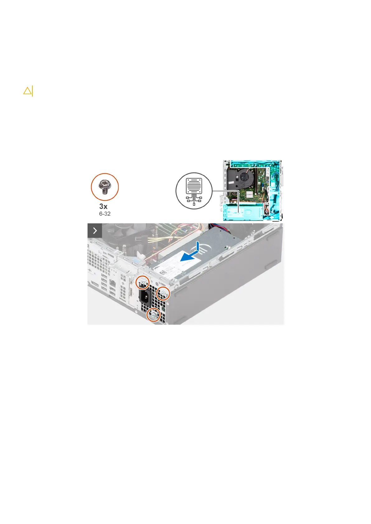 3. Rimuovere le tre viti (M6-32) che fissano l'unità di alimentazione allo chassis.