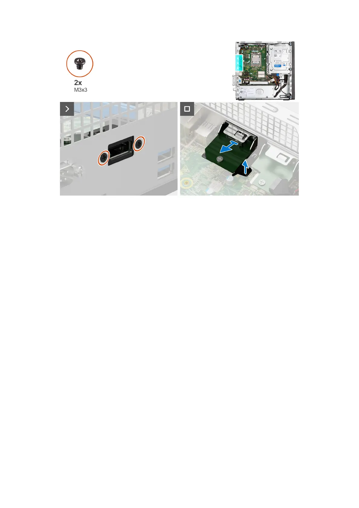 1. Rimuovere le due viti (M3x3) che fissano il modulo DP allo chassis.