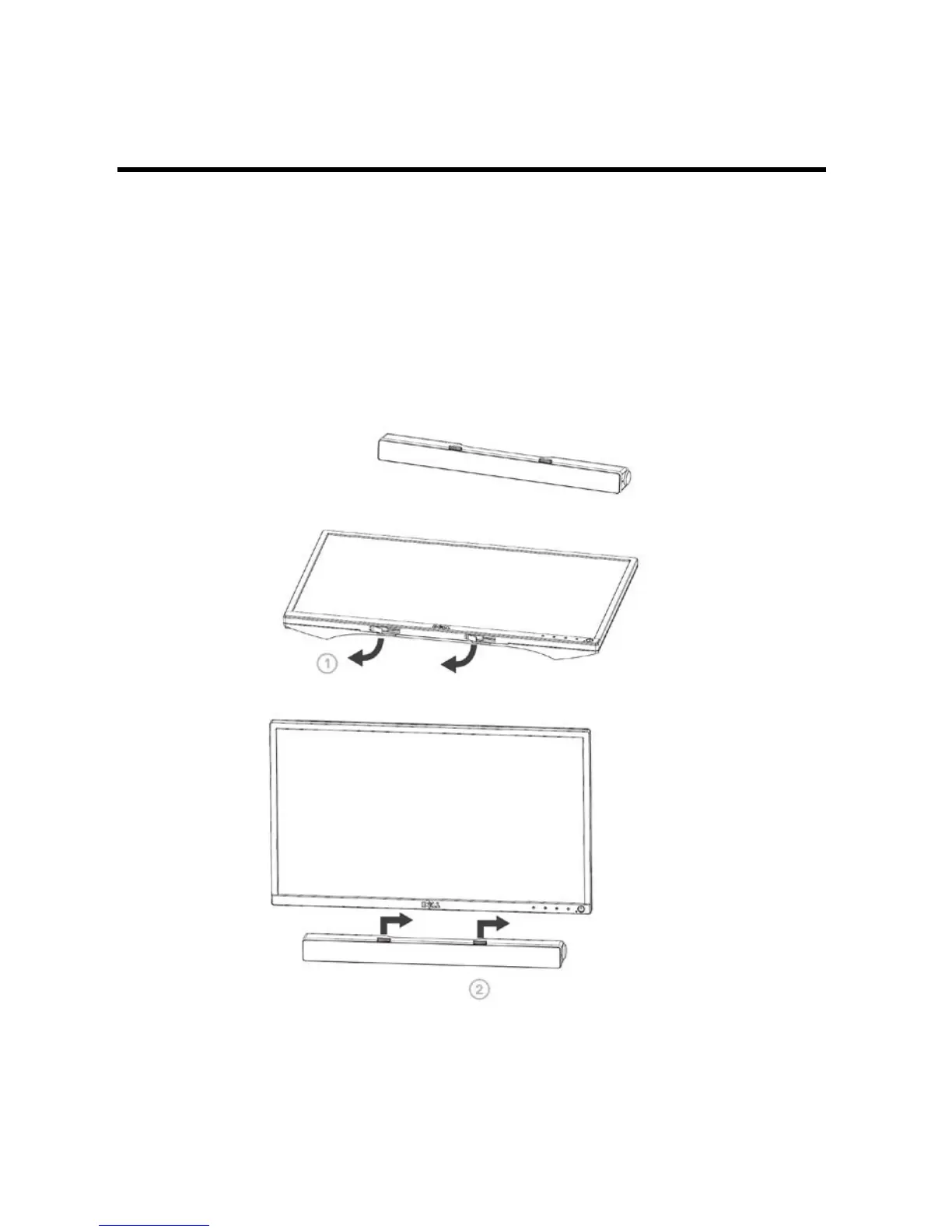 1 Align the tabs on the sound bar to the slots on the monitor base.