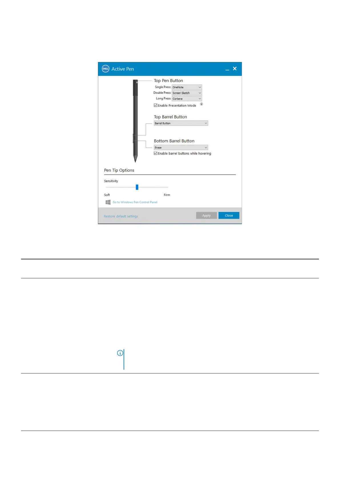 Table 4. Dell Active Pen features
