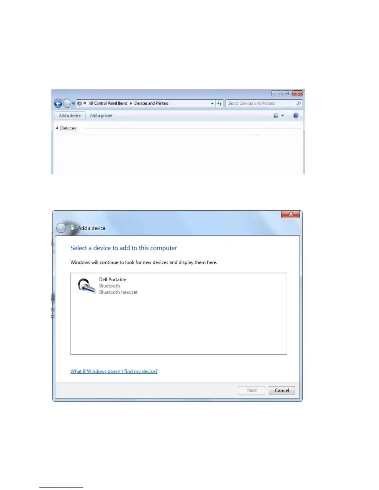 1 Click StartControl PanelDevices and Printers Add a device.