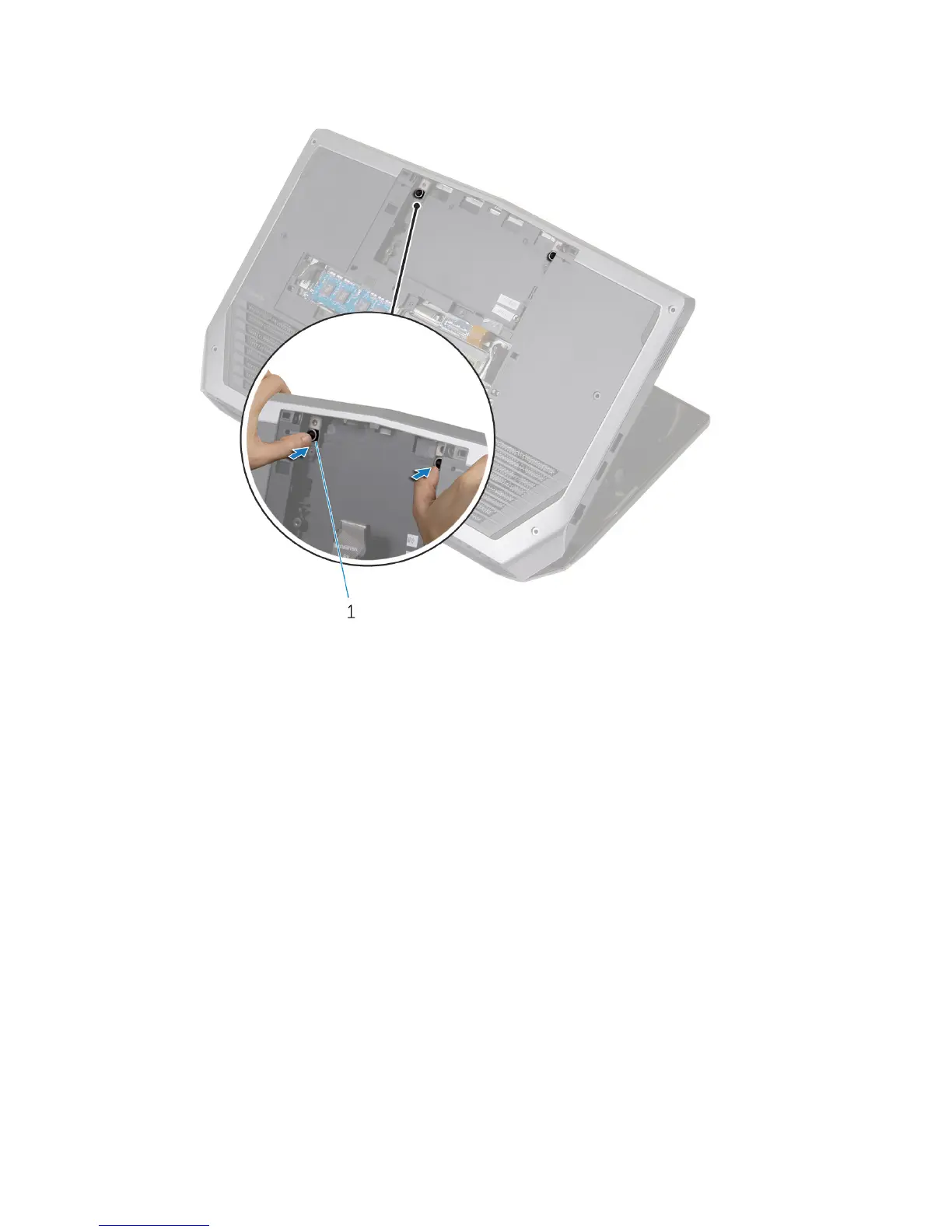 3 Lift the computer base slightly and push the release tabs on the palm-rest