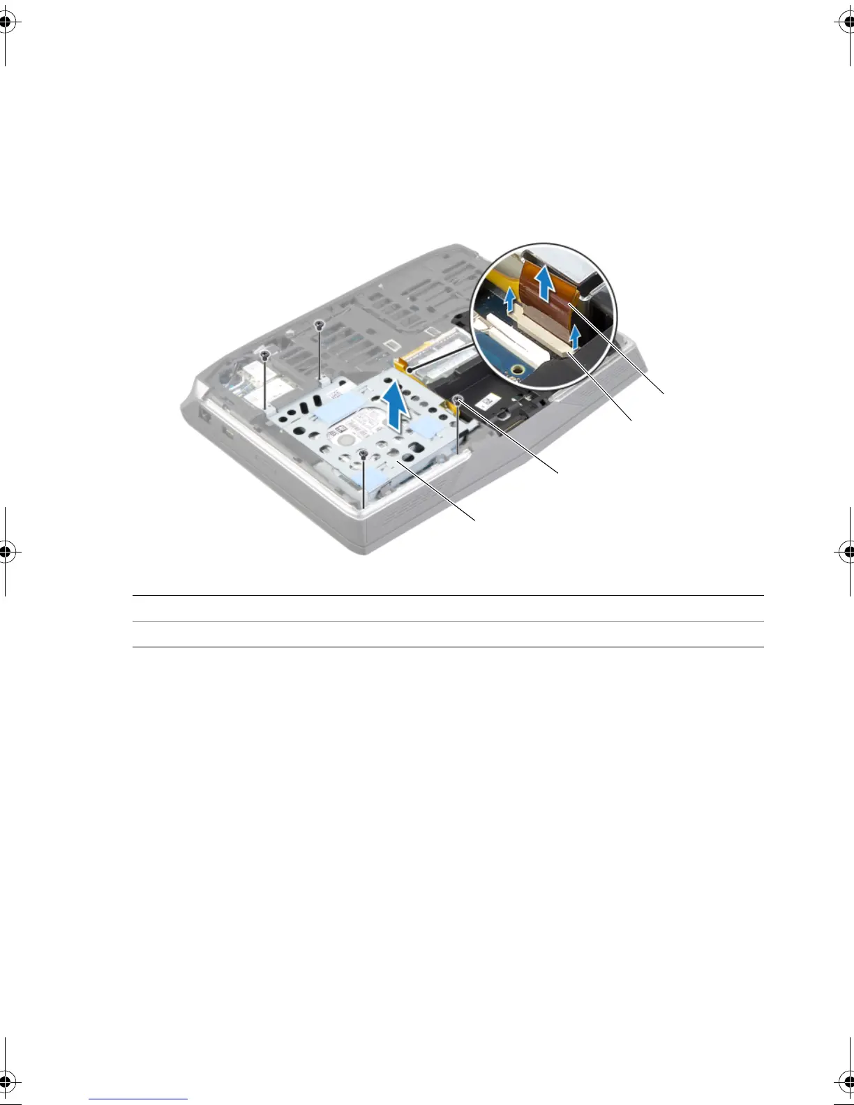 1 Remove the screws that secure the secondary hard-drive assembly to the computer