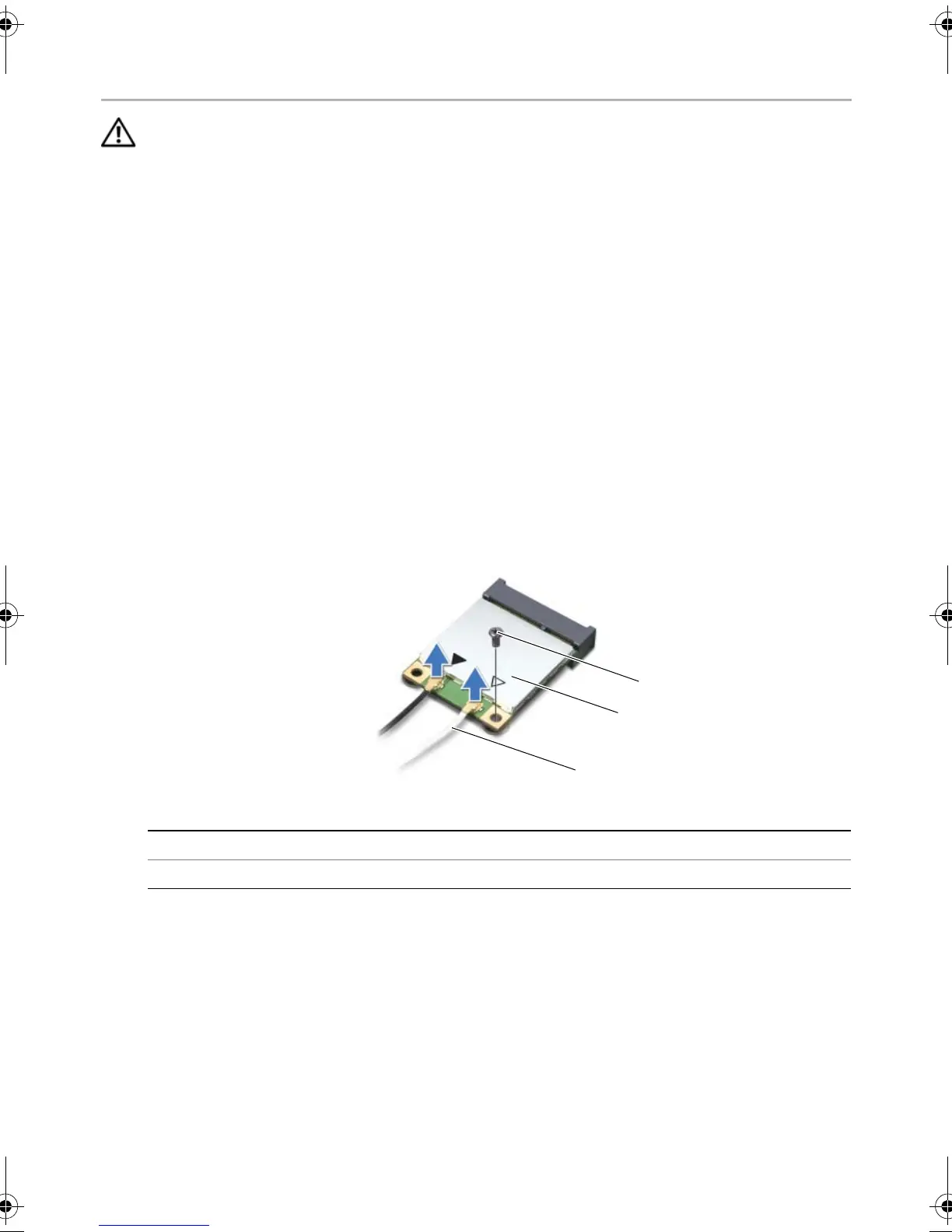 1 Disconnect the antenna cables from the wireless mini-card.